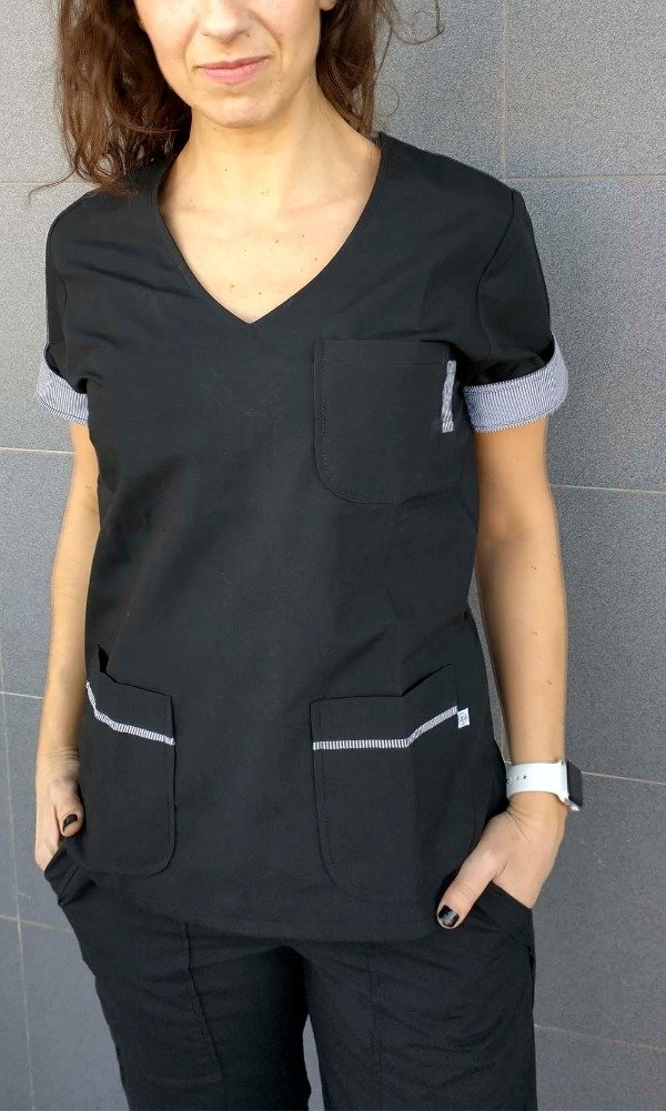 La chaqueta SAMY escote V mangas cortas, con vivos y vistas estampadas, 3 bolsillos y tajos laterales.