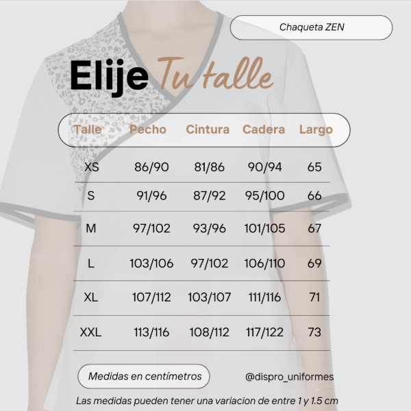 Largo total: XS: 65 cm / S: 66 cm / M: 67 cm / L: 69 cm / XL: 71 cm / XXL: 73 cm