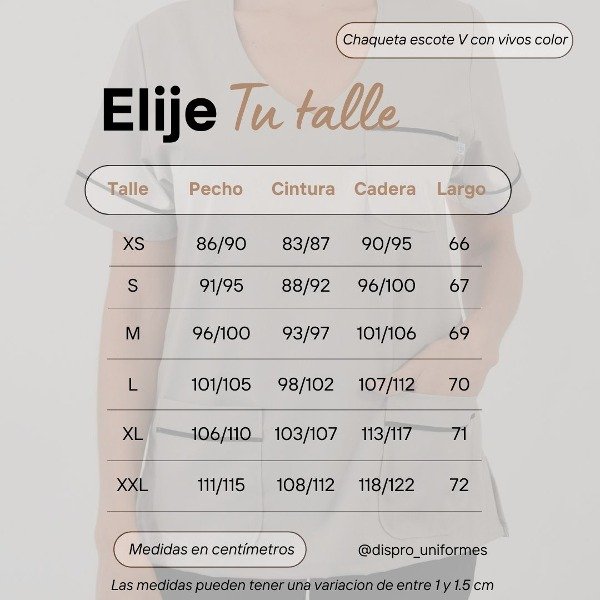 Largo total: XS 66 - S 67 - M 69 - L 71 - XL 71.5 - XXL 72.5